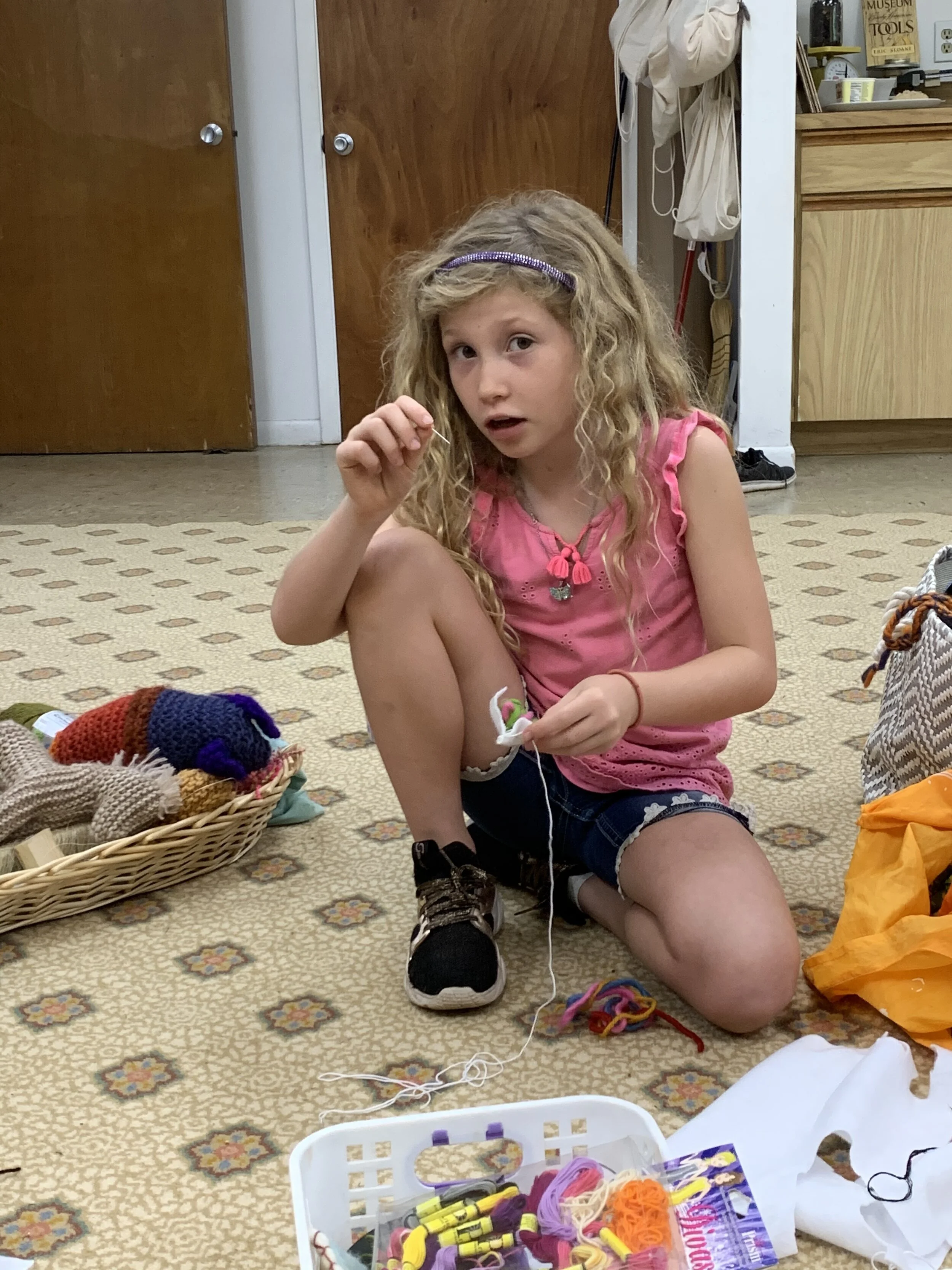 In this club with Ms. Garzon the children knitted farm animal. They also decorated the entrance fence using yarn bombing, a type of graffiti that uses colorful displays of finger knitted or crocheted yarn or fiber.
